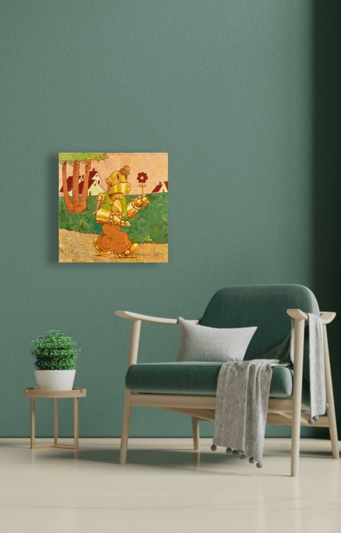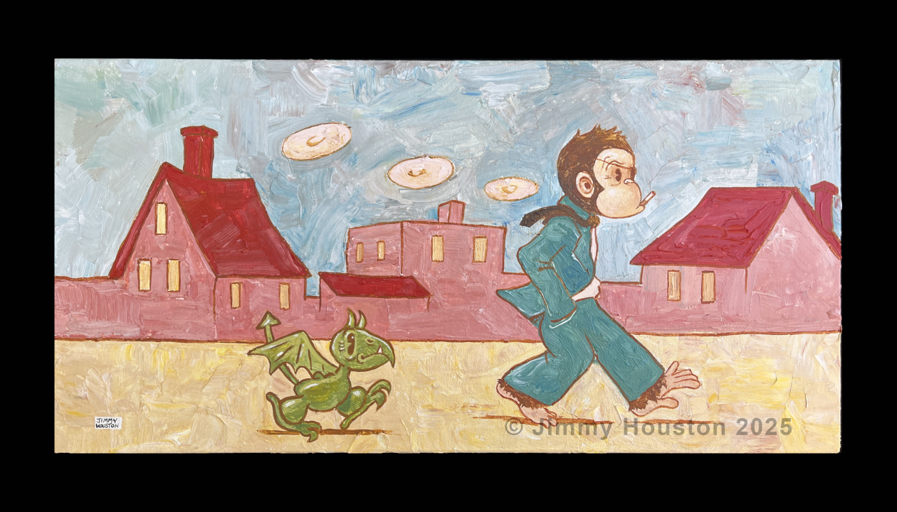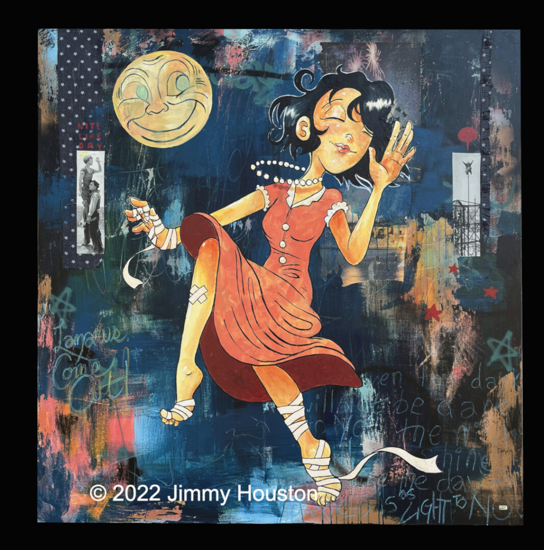 I’m a retro-animation fine artist based in Houston, known for painting smoking monkeys, tin men, and vintage-cartoon women. I’ve been blessed to do this full-time for over a decade—it’s truly my calling. The quirky cast of cartoon characters I create bring humor while deftly exploring universal emotions, questions, and perspectives. My work centers on human connection and dives into emotional and spiritual themes—crafting pieces that hopefully continue to resonate and inspire far into the future.